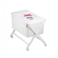 Découvrez le berceau en croix Parachute en rose, conçu par Interbaby. Fabriqué en hêtre blanc de haute qualité, ce berceau assure la sécurité et le confort de votre bébé. Inclus : parure, nacelle et matelas. Dimensions idéales : 55x90x72 cm pour un sommeil paisible. Offrez à votre enfant un espace d