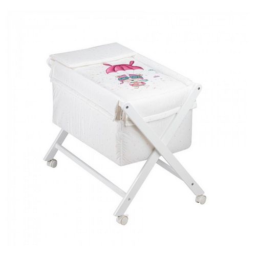 Découvrez le berceau en croix Parachute en rose, conçu par Interbaby. Fabriqué en hêtre blanc de haute qualité, ce berceau assure la sécurité et le confort de votre bébé. Inclus : parure, nacelle et matelas. Dimensions idéales : 55x90x72 cm pour un sommeil paisible. Offrez à votre enfant un espace douillet et élégant.