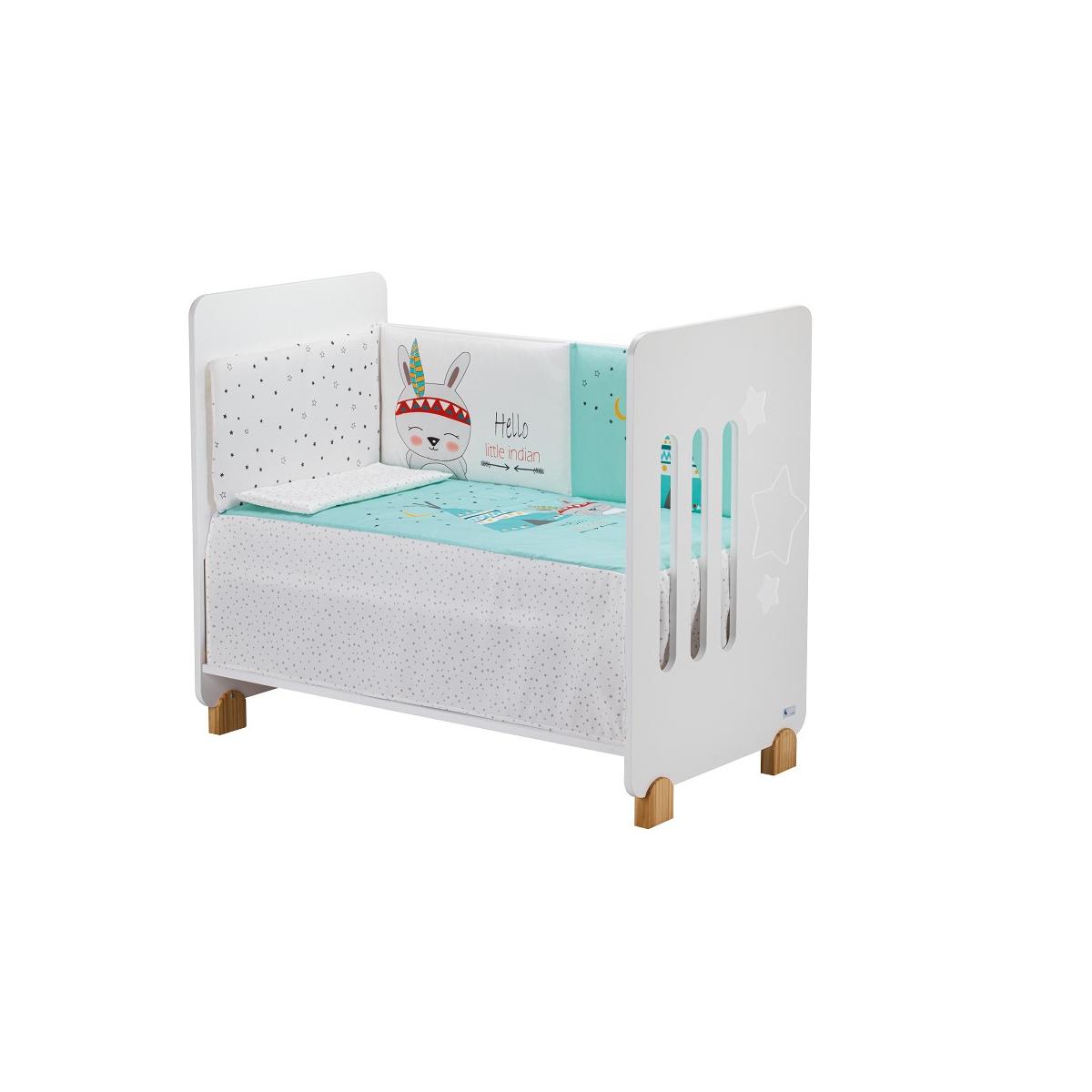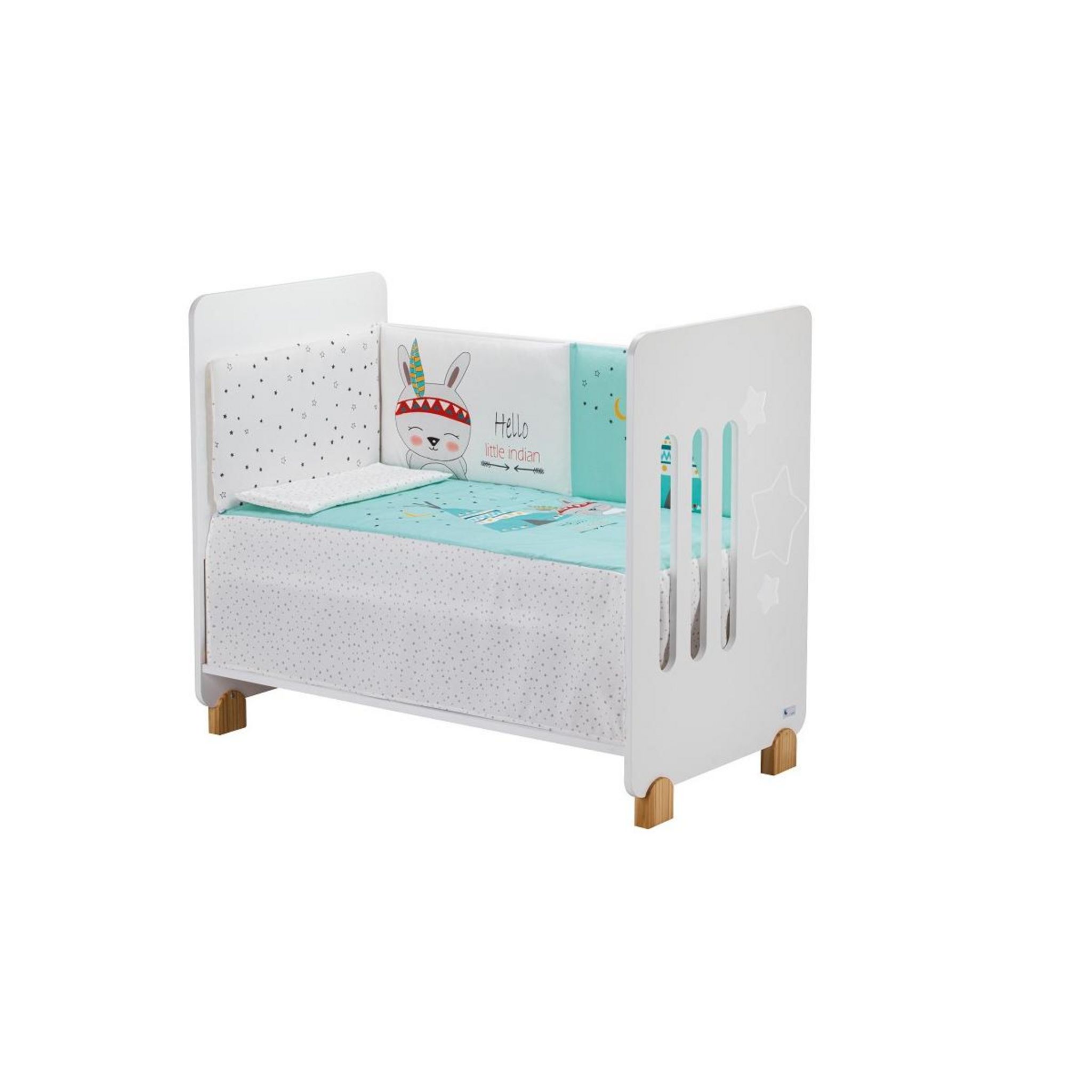 En savoir +Lit bébé en bois d'hêtre pour matelas 60x120 coleur blanc - mod. star nature + Lit cododo 3 pcs.(edredon+tour de Lit+coussin) mod.tipi/oso-verd