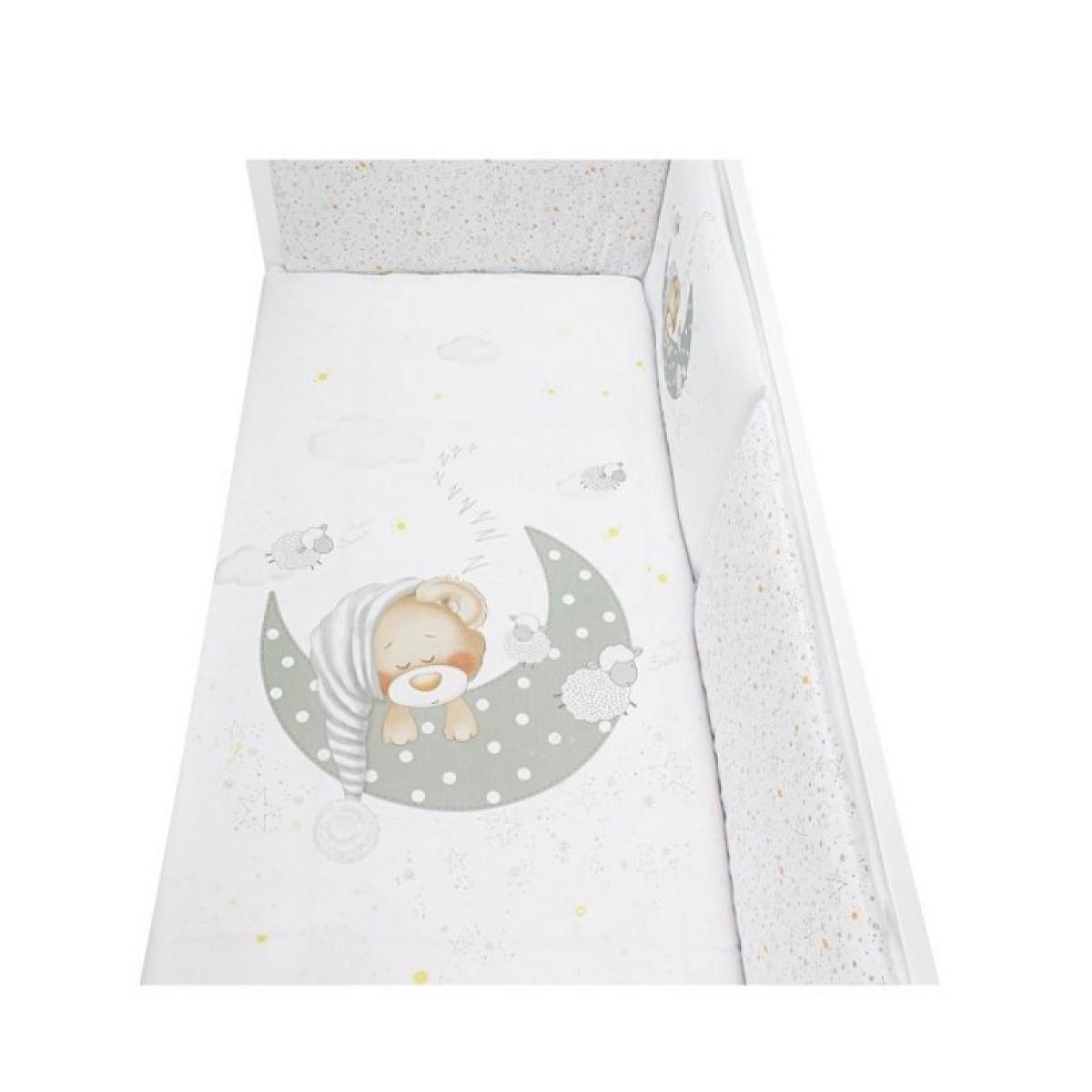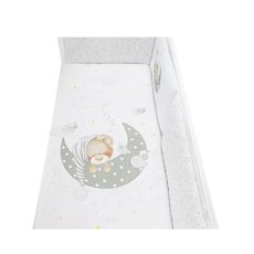 Contient : COORDONNE 2 PCS. AMOVIBLE - (COUETTE+TOUR DE LIT) MOD. BEAR SLEEPING - GRIS Couette avec garnissage amovible ? idéale pour une utilisation toute l'année, il suffit de retirer la ouate de silicone intérieure pendant les saisons plus chaudes. Tour de lit ? rembourré et amovible, offrant un