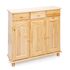 Ce charmant sideboard allie la fonctionnalité à une touche de nature. Fabriqué en pin à encens massif soigneusement sélectionné, il séduit par sa longévité et son aspect naturel. Les trois tiroirs spacieux, guidés par des rails métalliques, offrent un glissement en douceur et sont idéaux pour ranger divers objets du quotidien à portée de main. Derrière les trois portes élégamment conçues se cache un espace de rangement supplémentaire qui garantit suffisamment de place pour vos ustensiles.La surface du sideboard est vitrifiée avec un vernis transparent qui non seulement protège le bois massif, mais le rend également facile d'entretien et hydrofuge. Ce vernis peu polluant souligne la beauté naturelle du bois tout en contribuant à la protection de l'environnement. Avec ses dimensions de 130 cm de large, 43 cm de profondeur et 87 cm de hauteur, le sideboard s'intègre parfaitement dans les concepts d'habitat les plus divers.Chaque meuble est fabriqué selon les normes européennes, en utilisant des procédés respectueux de l'environnement. Il en résulte un produit de haute qualité, bien fini et écologique, qui convainc tant du point de vue fonctionnel qu'esthétique. Que ce soit dans le salon, la salle à manger ou l'entrée, ce sideboard est un meuble élégant et pratique qui apporte chaleur et naturel à votre intérieur.