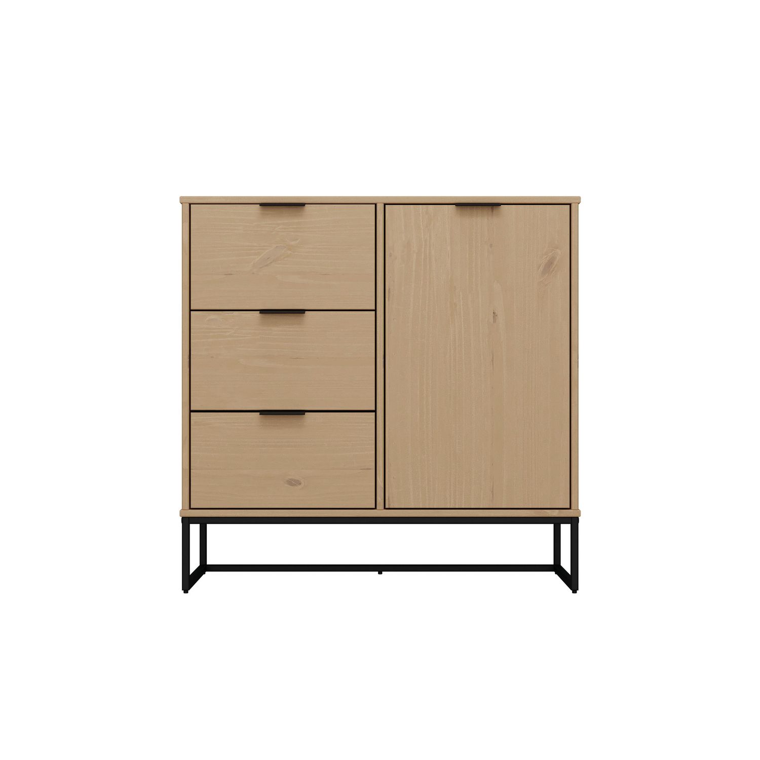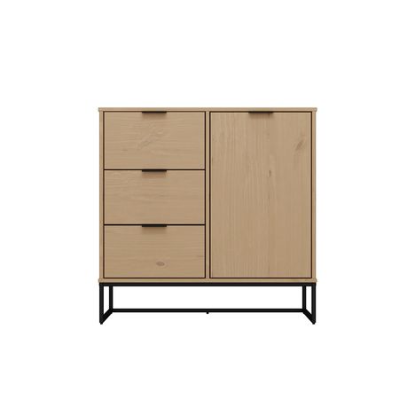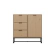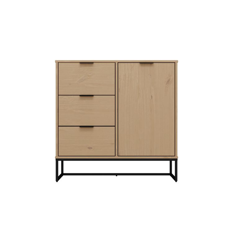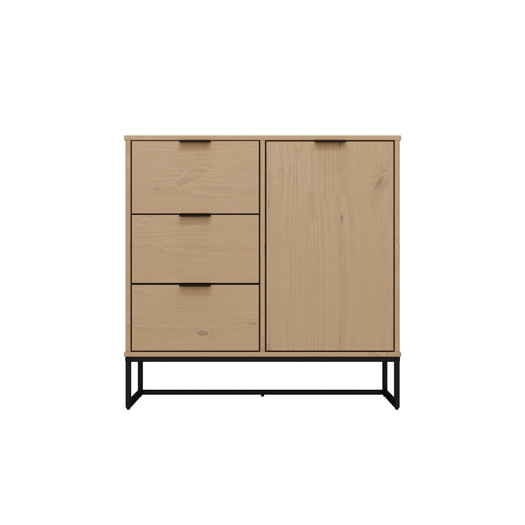 Le sideboard de la série VIVO est très pratique dans la salle à manger ou le salon. Avec une porte et 3 tiroirs, il offre suffisamment de place pour la vaisselle, les couverts et bien plus encore. La couleur chaude du bois de pin massif crée une atmosphère chaleureuse. La série VIVO est particulière, car elle allie parfaitement nature et design. Avec son bois de pin massif et ses veines uniques, elle dégage une beauté naturelle qui t'enchantera chaque jour. En même temps, elle séduit par sa forme intemporelle et son robuste piètement métallique noir, qui en font un meuble moderne. La série VIVO est donc une pièce unique qui confère à ton salon une aura particulière.