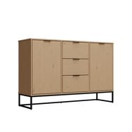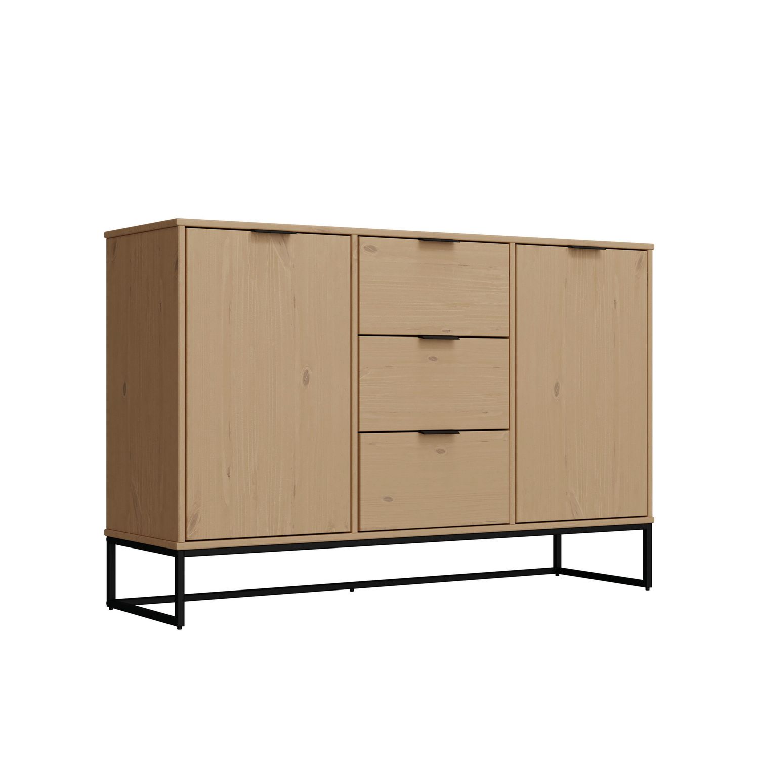 Le sideboard de la série VIVO est un véritable miracle de place. Avec 2 portes et 3 tiroirs, il offre suffisamment d'espace de rangement pour tout ce qui est nécessaire dans un salon. Le bois de pin massif et le cadre métallique noir lui confèrent un aspect moderne. La série VIVO est particulière ca