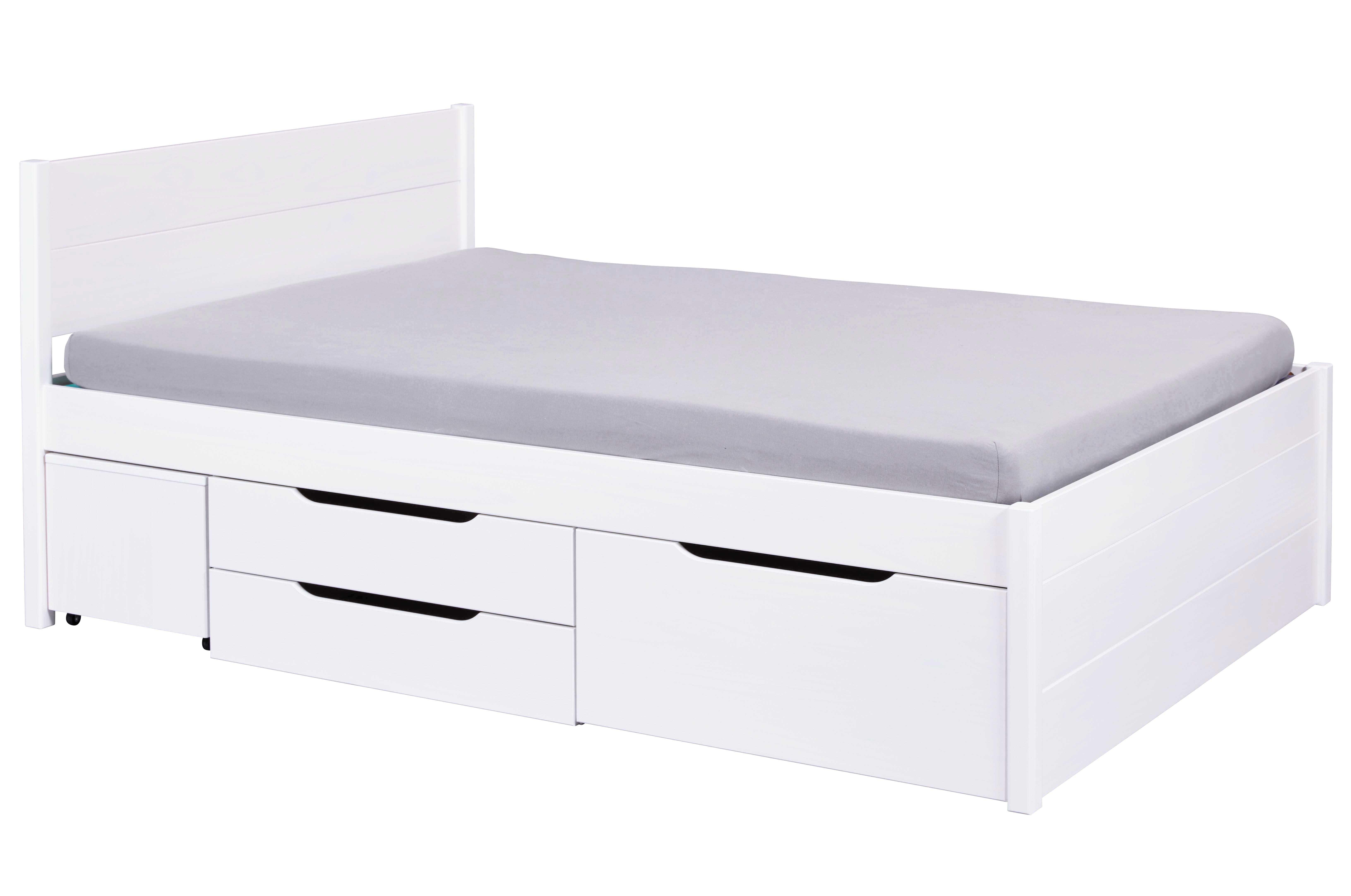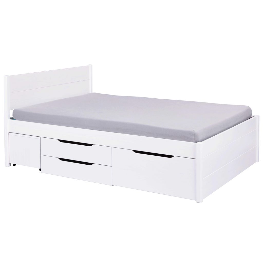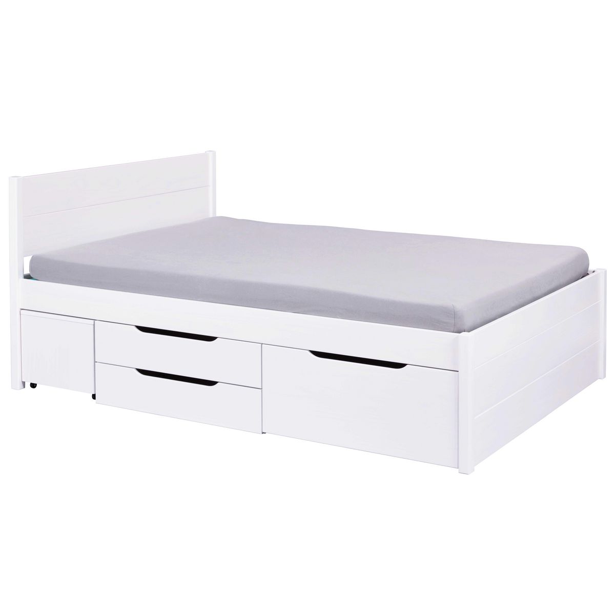 Découvrez le lit fonctionnel Efetivo dans la dimension 180 x 200 cm dans un blanc éclatant. Fabriqué en pin massif de qualité supérieure, ce lit offre non seulement un couchage reposant, mais aussi une multitude d'options de rangement. Avec un total de deux tiroirs spacieux et quatre tiroirs pratiqu