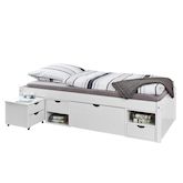 Le lit fonctionnel est idéal pour les petites pièces comme la chambre d'amis. Till est un lit fonctionnel en bois massif extrêmement pratique. Chez Till, l'espace sous le lit est efficace grâce à un système de tiroirs. Le lit dispose de 2 tiroirs, d'un grand tiroir, de 4 étagères et d'une commode de nuit. Les housses de couette, les couvertures ou autres ustensiles peuvent être rangés directement sous le lit. Le bois de pin massif du lit fonctionnel Till est laqué blanc. Outre la valorisation optique, le vernis pauvre en substances nocives protège le bois, est hydrofuge et facile d'entretien. Les veines naturelles du bois sont visibles et discrètement mises en valeur. Le matériau utilisé (bois massif) répond aux normes de qualité européennes les plus récentes. Seule l'utilisation de matériaux sélectionnés permet d'obtenir un lit robuste et stable. Le lit fonctionnel Till convainc non seulement par son gain de place, mais aussi par sa grande résistance. Le sommier à lattes est compris dans la livraison. Dimensions montées (LxPxH) : 209 x 96 x 47,5 cm. Une notice de montage illustrée est fournie.