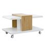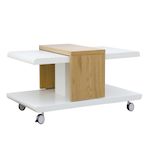 La table basse JOLIET dispose du petit plus esthétique et fonctionnel qui s'inscrit parfaitement dans l'air du temps : un plateau de table extensible qui peut être modifié à volonté afin de toujours se trouver exactement là où vous en avez besoin. Une table basse très moderne montée sur 4 roulettes pour que vous puissiez la déplacer à votre guise. Elle trouvera facilement sa place dans un appartement ou une maison, ou même dans la chambre d'un adolescent qui souhaite se créer un coin détente pour recevoir ses amis. Sous le plateau de la table se trouve une niche dans laquelle vous pouvez ranger vos télécommandes ou vos magazines. Des instructions illustrées étape par étape pour le montage sont incluses.