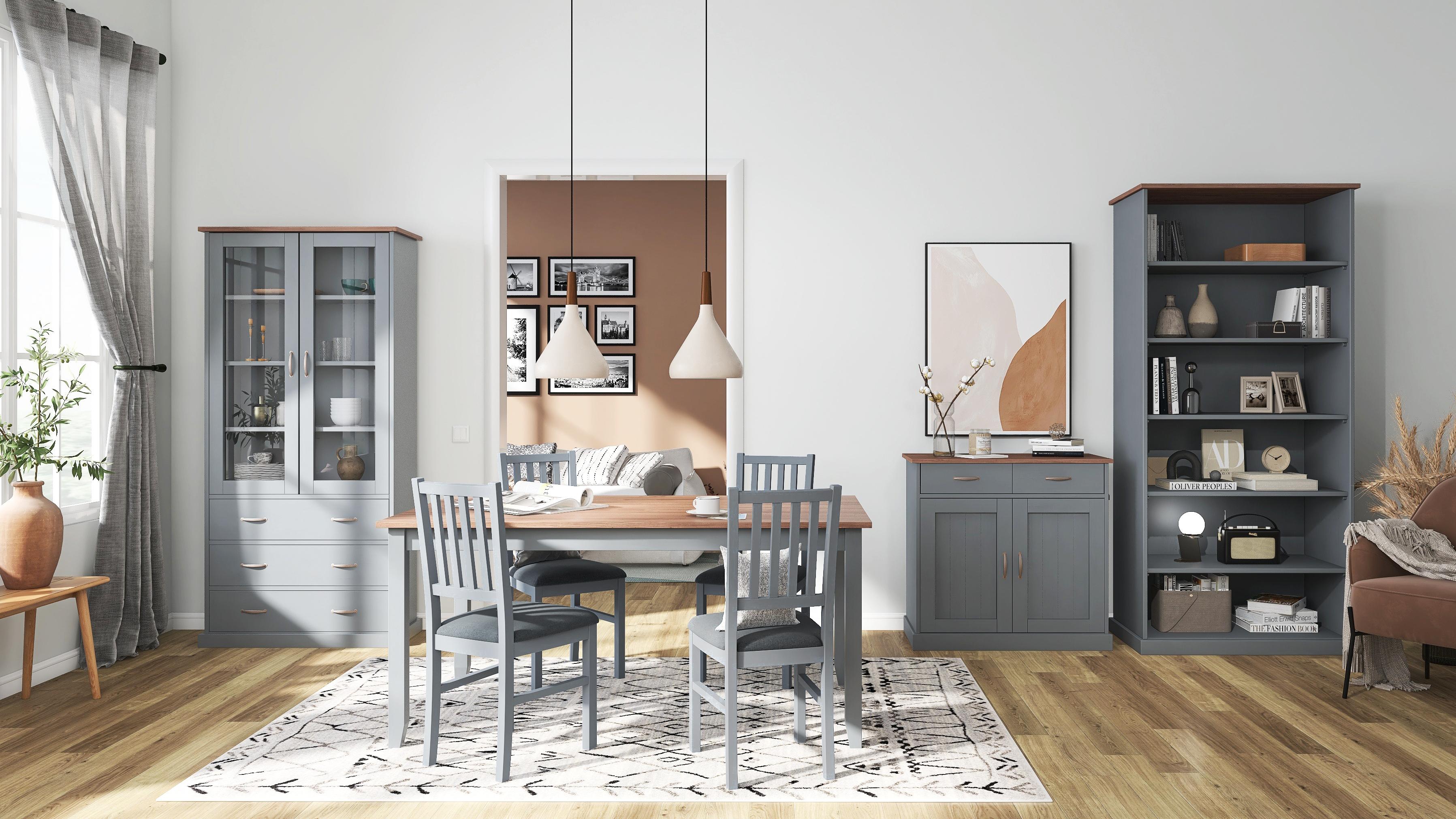 Avec son plateau de table rectangulaire pouvant accueillir jusqu'à 6 personnes, la table à manger LUZERNA est très accueillante et bénéficie d'une finition de qualité. Elle se compose d'un plateau de table en pin massif soutenu par un châssis en MDF. La table à manger peut être utilisée seule ou en combinaison avec d'autres meubles de la même collection. Les deux couleurs de cette table à manger, gris et sépia, confèrent de l'élégance à votre salle à manger de style rural ou scandinave. Le design raffiné est une réinterprétation artistique du style traditionnel des maisons de campagne. Le certificat FSC prouve que ce meuble a été fabriqué de manière durable et respectueuse de l'environnement. Une notice de montage illustrée étape par étape est incluse.