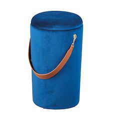 Le pouf PAPUA en velours bleu roi apporte modernité et douceur à votre intérieur. Il est parfait comme siège supplémentaire ou bout de canapé dans un salon, mais peut également être placé dans une entrée, un dressing ou même une chambre. Le couvercle amovible laisse de la place pour un bel espace de rangement. Magazines, plaid, coussins, écharpe/gants, jouets et autres accessoires peuvent y être rangés sans problème. Il est peu encombrant et léger et peut être transporté sans problème grâce à sa sangle de transport de couleur camel.