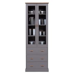 Esthétique et fonctionnel à la fois, le vaisselier LUZERNA est le meuble qui vous permettra de vous organiser dans votre cuisine ou votre salle à manger. La partie supérieure du vaisselier LUZERNA est composée de deux portes en verre pour créer un effet de vitrine. À l'intérieur, vous trouverez une étagère où vous pourrez ranger et protéger votre vaisselle ou d'autres objets. Une grande et large niche au centre permet d'accueillir tout type de décoration. Trois tiroirs spacieux forment la partie inférieure du coffre. Cette vaisselle de style campagnard gris/sépia n'est pas trop envahissante, elle apporte de la chaleur et deviendra le meuble star de votre chambre ! Des instructions illustrées étape par étape pour le montage sont incluses.