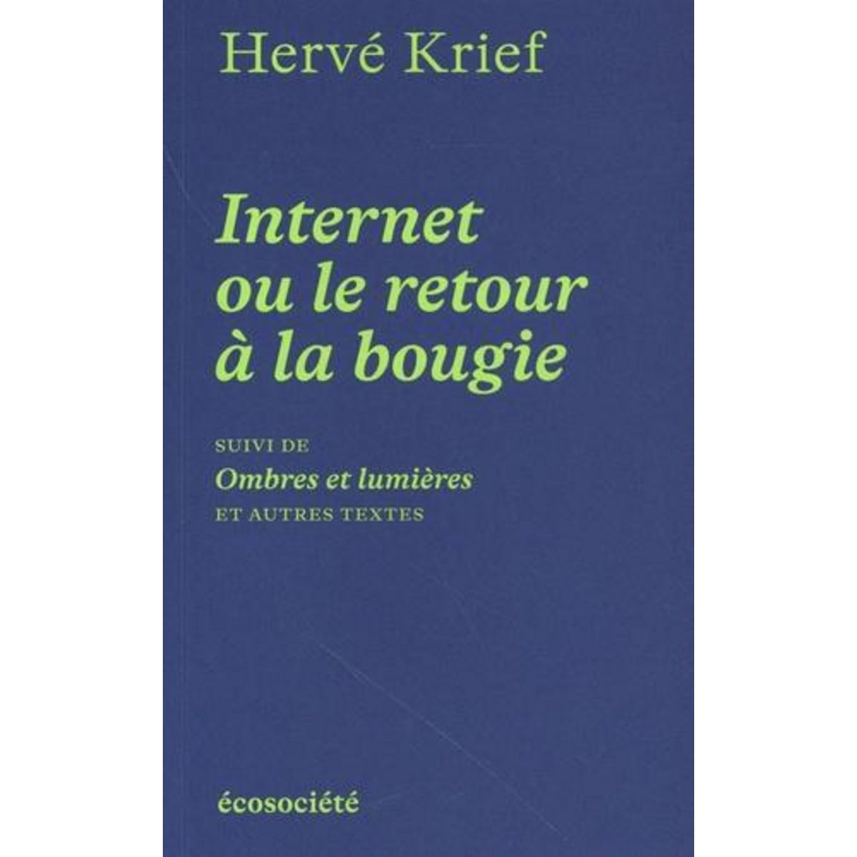 Sur quoi repose la société de l'Internet ? Quels enjeux environnementaux et sociaux découlent de la connexion permanente ? A quels renoncements et sacrifices mène la numérisation de nos vies ? Les technologies se sont multipliées sans véritable réflexion sur leurs implications sociétales. Face à ce conditionnement généralisé, nous nous sommes résignés à ce que le numérique façonne notre existence. L'ambition de cet essai, publié pour la première fois en 2018, est d'ouvrir le débat sur la révolution numérique afin de prendre la mesure de cette démesure qui semble achever l'expropriation des humains d'eux-mêmes et la destruction du monde vivant. Ce pamphlet mêle une critique radicale de l'Internet et de la société technicienne à des récits de vie élaborés à partir d'une observation attentive des transformations de nos vies quotidiennes au travail, dans l'espace social et dans le domaine privé. Cette nouvelle édition d'Internet ou le retour la bougie est accompagnée d'Ombres et lumières, ouvrage subséquent qui renferme un ensemble de propositions politiques et poétiques ainsi qu'une série de textes inédits sur ce pauvre temps numérique qui nous submerge désormais.