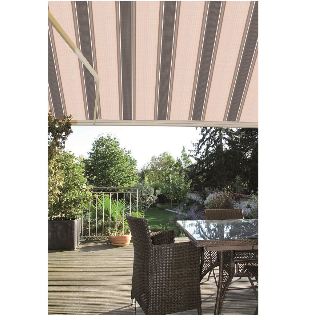 Store motorisé 3x2m OTTAWA toile rayée coffre intégral blanc