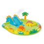 L'aire de jeux petit dino Intex est idéale pour les enfants à partir de 2 ans. Eveillez la curiosité de vos bambins et faites les voyager dans le monde des dinosaures grâce au design coloré de cette aire de jeux gonflable. Avec le toboggan, la fontaine et le petit dinosaure gonflable inclus, l'aire de jeux petit dino sera le produit indispensable de l'été afin que vos plus petits s'amusent à s'éclabousser.