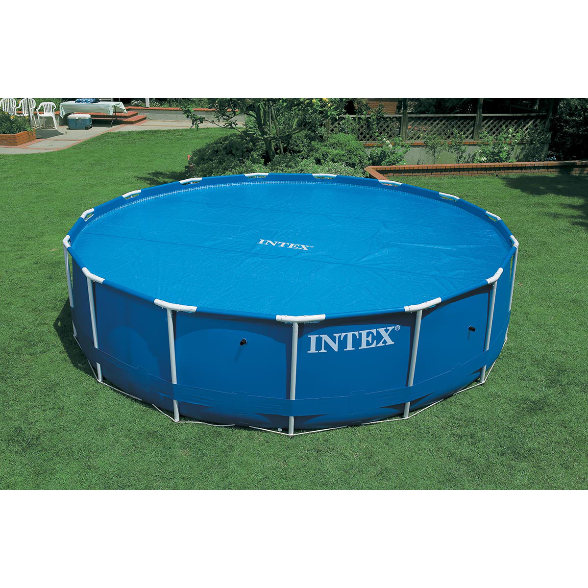Attention : Les dimensions finies de la bâche sont toujours légèrement plus petites que le diamètre de la piscine, afin d'éviter que la bâche se plaque contre les parois de la piscine. Cette bâche à bulles Intex convient uniquement aux piscines de la marque Intex. Elle n'est pas compatible avec des piscines d'une autre marque.
