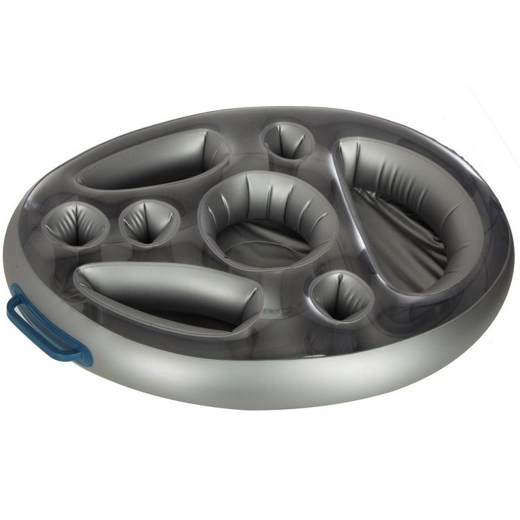 Gardez vos boissons sous la main même dans votre piscine ou spa grâce à ce bar gonflable.FICHE TECHNIQUE- Bar flottant en PVC.- Dispose de nombreux compartiments pour accueillir vos bouteilles et verres.- Equipé de deux poignées sur les côtés pour le transporter en toute sécurité.- Stable grâce à 2