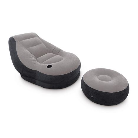 Ensemble fauteuil + pouf gonflables Ultra Lounge - Intex. Très confortable et stable. Flocage résistant à l'eau, design tendance, couleurs sobres. Dimensions pouf (Ø x H) : 64 x 28 cm. Dimensions fauteuil (l x L x H) : 99 x 130 x 76 cm.