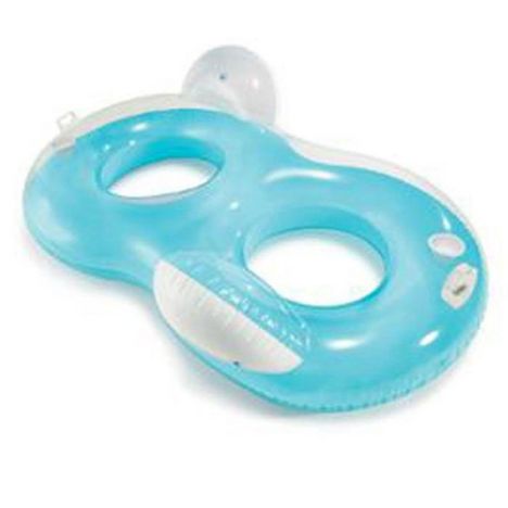 Informations Techniques : Dimensions : L. 198 x l. 117 cm Matière : Vinyle Spécificités : Bouée 2 places Deux porte-verres Deux poignées résistantes Poids : 2 kg Couleur : Bleu