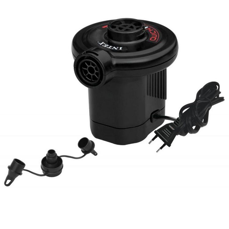 Informations Techniques : Matière : PVC, Cuivre, ABS & Polyéthylène Spécificités : Type : Électrique Puissance d'Alimentation : 220 Volts Fonctions : Gonflage & Dégonflage Pression maximum : 0,75 PSI Nombre d'embouts : 3 ajustables à tous types de valves Poids : 0,63 kg Couleur : Noir