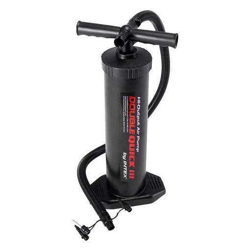 Informations Techniques : Dimensions : H. 48 cm Matière : Polypropylène Spécificités : Résistant & Utile Gonfleur double action à haut débit Pour matelas et articles gonflables Gonfle en pression et dépression Par simple changement de connecteur Tuyau flexible avec 3 embouts Aiguille pour gonfler le