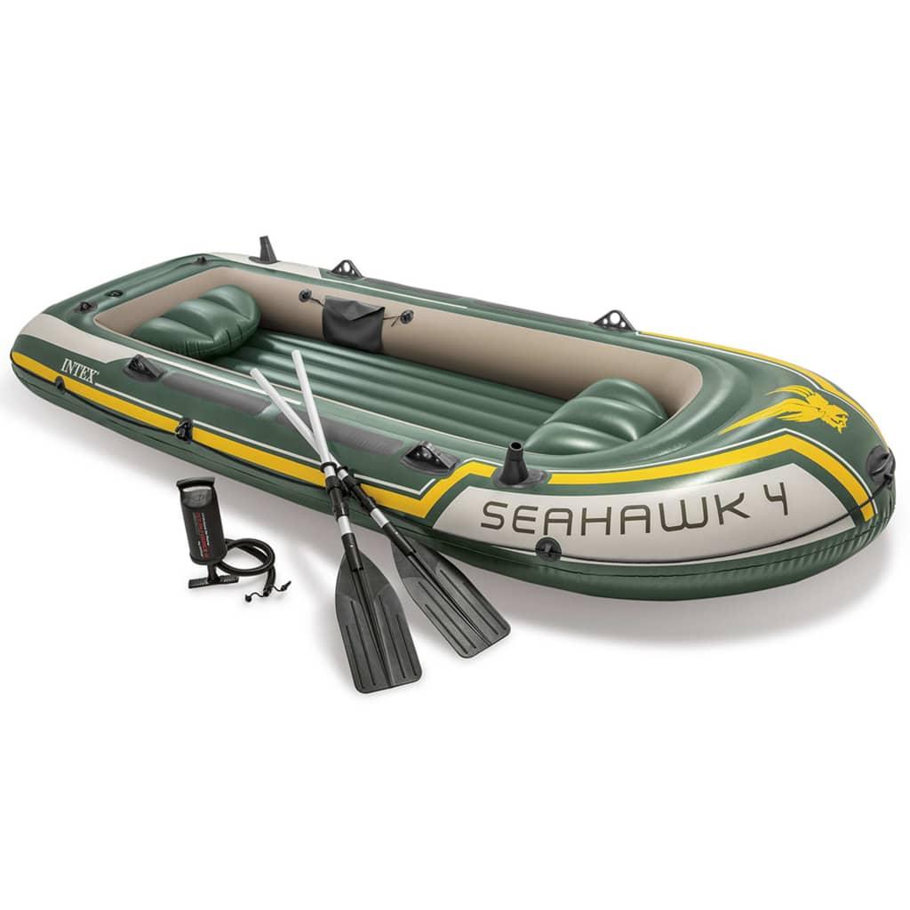 Le bateau pneumatique 68351NP de la marque Intex peut etre utilise comme deriveur et convient aux eaux peu profondes. Il est robuste et peut accueillir quatre adultes.