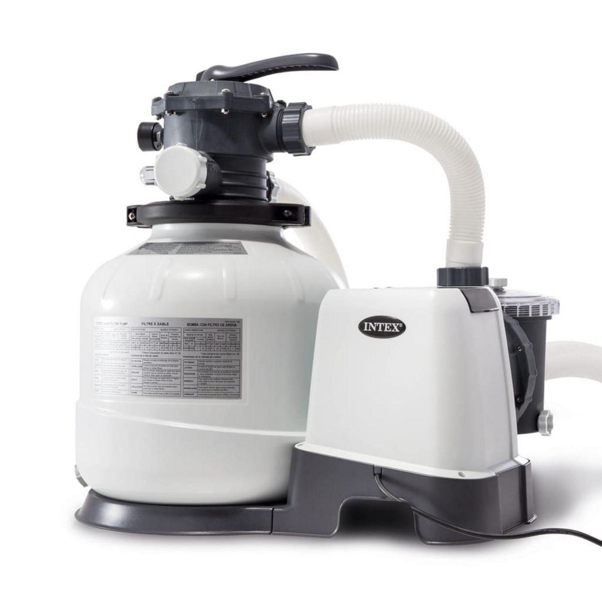 Cette pompe de filtration a sable 26648GS de la marque Intex assure une circulation d'eau rapide et efficace pour garder l'eau de la piscine propre.