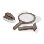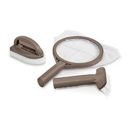 Kit entretien pour spaCe kit entretien pour spa vous permettra de nettoyer votre spa.Il se compose de :Une brosse incurvéeUn filet en mailleUne éponge à récurerCaractéristiques techniquesCompatibilité : UniverselConvient pour : NettoyageCouleur : Marron Dimensions colis (L x l x H) : 8,57 x 35,24 x