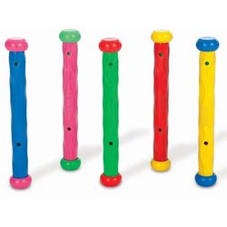Informations Techniques : Dimensions : D. 2,5 x H. 18,5 cm Matières : Néoprène & PVC Spécificités : Astucieux & Pratique Lot de 5 Bâtons Lestés Forme Ronde 5 Couleur : Bleu, Rose, Vert, Rouge & Jaune Les Bâtons Tiennent Debout au fond de l'Eau A partir de 6 ans Poids : 0,23 kg Couleur : Multicolore