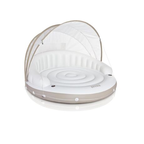 Intex 58292EU Le lounge caraïbes INTEX, l'élément indispensable pour vous prélasser tout l'été.Grâce à son pare-soleil détachable, ce grand matelas gonflable rond est parfait pour vous détendre tout en étant protégé du soleil.Entrez dans cette bulle de douceur seul ou à plusieurs ! - Coloris : Blanc