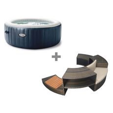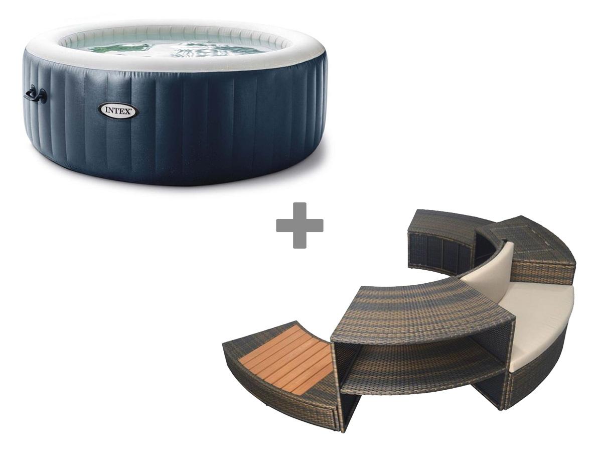 Pack spa gonflable Intex PureSpa Blue Navy rond Bulles 4 places + Ensemble mobilier