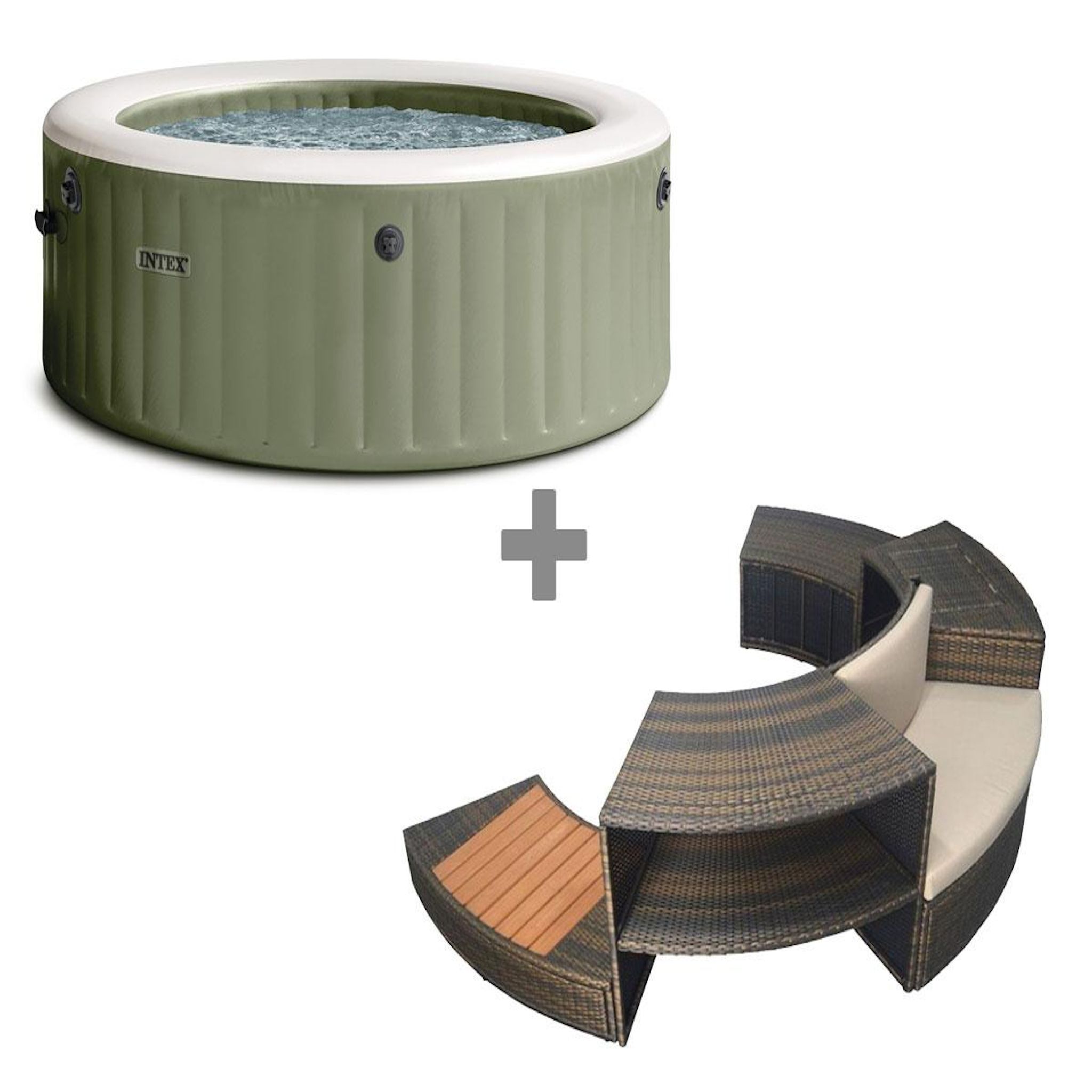 Pack spa gonflable Intex PureSpa Sahara rond Bulles 6 places + Ensemble mobilier