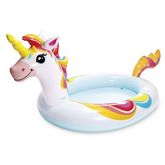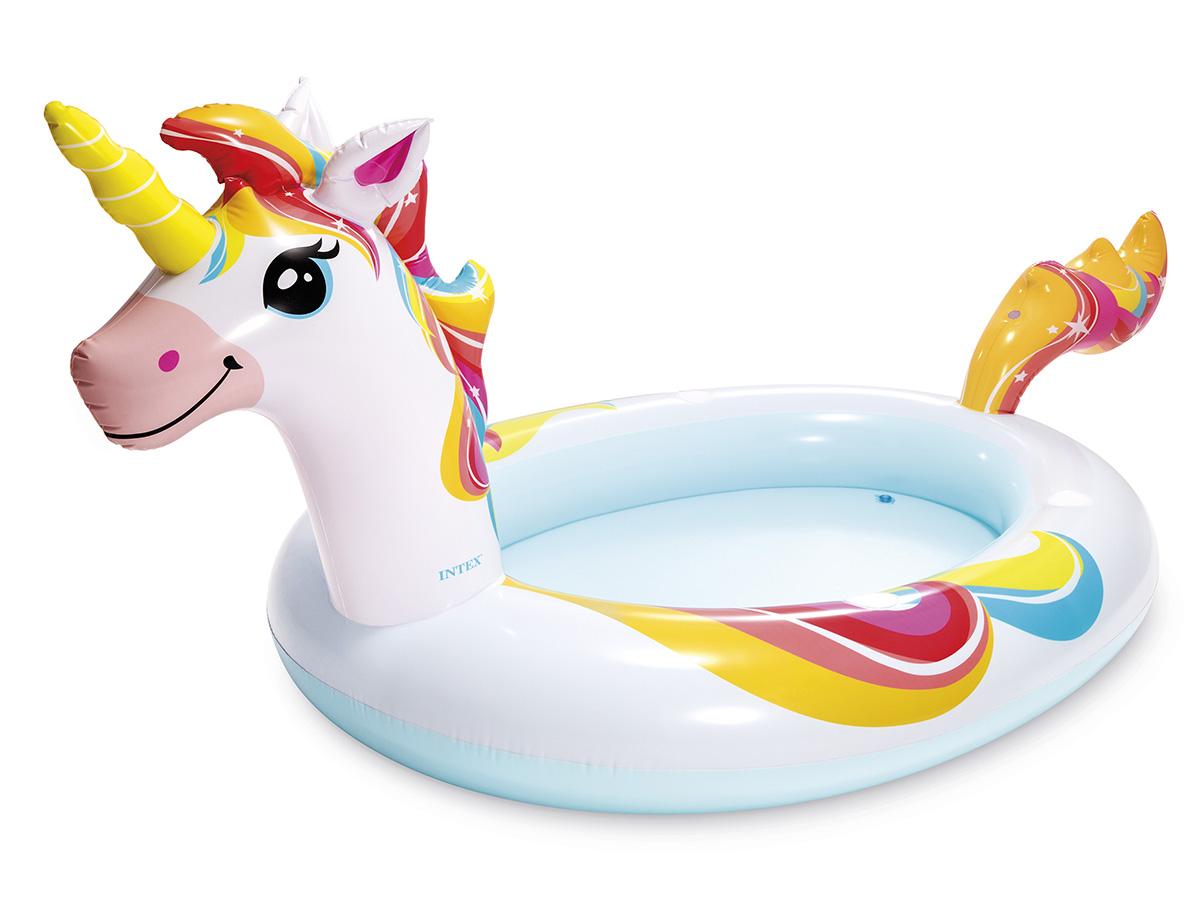 Licorne gonflable Intex pour enfantParfait pour rafraîchir un enfant en bas âge durant les journées très chaudes, cette licorne gonflable Intex fera plaisir à votre enfant. Elle possède une fontaine pour le rafraîchir durant sa baignade et un parasol amovible pour le protéger des rayons du soleil.Et
