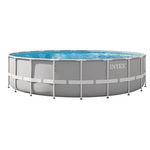 Piscine tubulaire Prism Frame ronde 6,10 x 1,22 m - Intex. Liner en PVC armé triple épaisseur gris clair.
