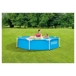 La piscine tubulaire ronde METAL FRAME de la marque INTEX est fournie en kit complet. Elle est gage de qualité puisque son liner triple épaisseur est conçu pour résister aux rayures et son système de tube permet un montage facile puisque suffit simplement de les emboiter aux emplacements prévus dans le liner et de remplir la piscine. Spécialement conçu pour enfants, elle leur permettra de passer de bons moments de divertissements et de profiter de divers jeux aquatiques !. Diamètre extérieur : 2, 44m.