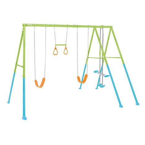 Une aire de jeux spacieuse ! Profitez sans plus attendre du nouveau portique-balançoire 4 agrès Intex : 1 face à face / 2 balançoires / 1 trapèze. Très coloré il se positionnera très facilement dans votre jardin et s'installera rapidement. De quoi faire rêver vos enfants dès l'âge de 3 ans.Caractér