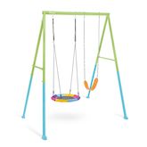 Composé de tubes légers et faciles à assembler, ce portique-balançoire se monte facilement. Une fois installé sur une surface plane, il vous suffit simplement de fixer les agrès à savoir la balançoire et le nid d'oiseau et de fixer le système d'ancrage au sol. Rapidement, voyez votre jardin se transformer en aire de jeu colorée, sous les yeux émerveillés de vos enfants.