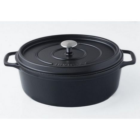 Invicta PUV403331 Daubière Invicta PUV403331 en fonte émaillée avec intérieur noir mat et extérieur 3 couches d'émail pour un entretien facile. Bouton en inox pour résister aux fortes températures du four. Anses larges pour faciliter la prise en main. Couvercle à réserve d'eau et à picots intérieurs