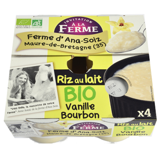 Nous avons lancé en 2016 ce riz au lait à la vanille Bourbon Invitation à la Ferme. Le riz vient de Camargue, la vanille de Madagascar. Comme tous nos produits, ce dessert est fabriqué avec du lait directement issu du pis de la vache, pasteurisé bien-sûr mais non homogénéisé !