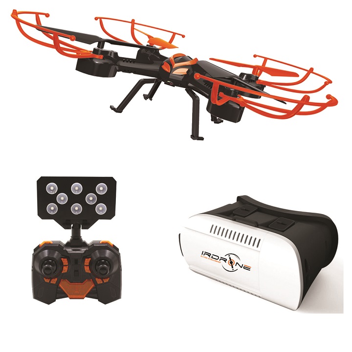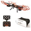 - Dans le pack est inclus un casque de réalité virtuelle qui permet de découvrir en temps réel la vidéo filmée par votre drone en 3D.