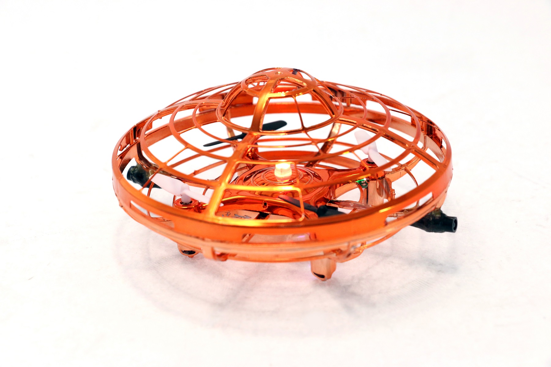 Ce drone en forme de soucoupe lumineuse est auto piloté. Autonome, il détecte automatiquement les obstacles et change de direction. Pour le faire décoller, il suffit de le lancer dans les airs et le drone s'autostabilise. Puis l’utilisateur peut le diriger en apposant sa main d’un côté ou de l’autre pour le faire changer de direction.