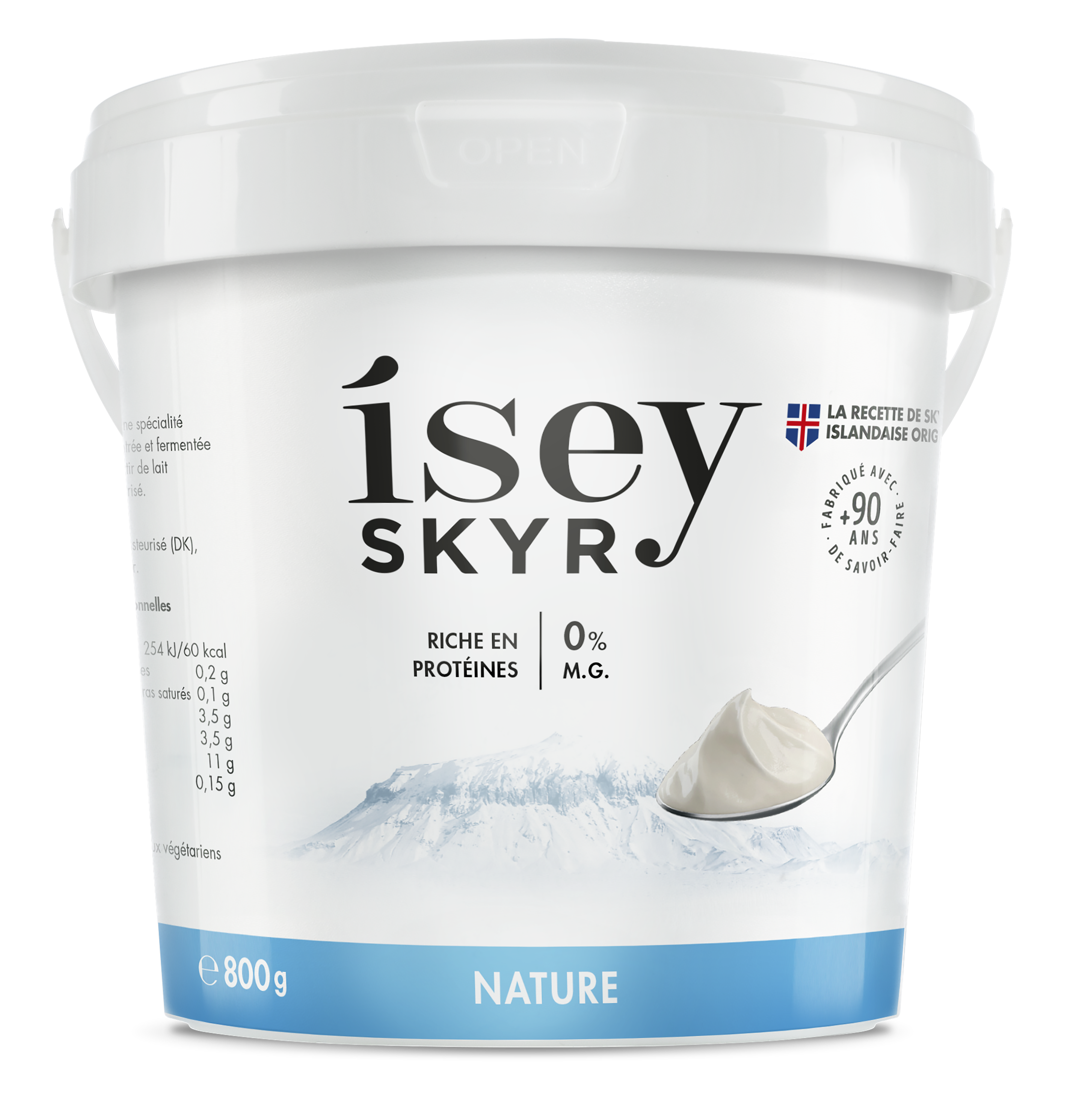 ISEY Skyr est riche en protéines, en calcium et naturellement sans matière grasse. Délicieuse spécialité laitière islandaise, ISEY Skyr se fabrique avec trois fois plus de lait qu’un yaourt traditionnel, ce qui lui garantit une teneur exceptionnelle en protéine. Savourez votre skyr islandais nature ou aux fruits, au gré de vos envies.