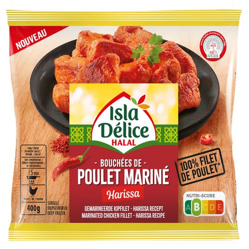 Bouchées de poulet halal mariné harissa