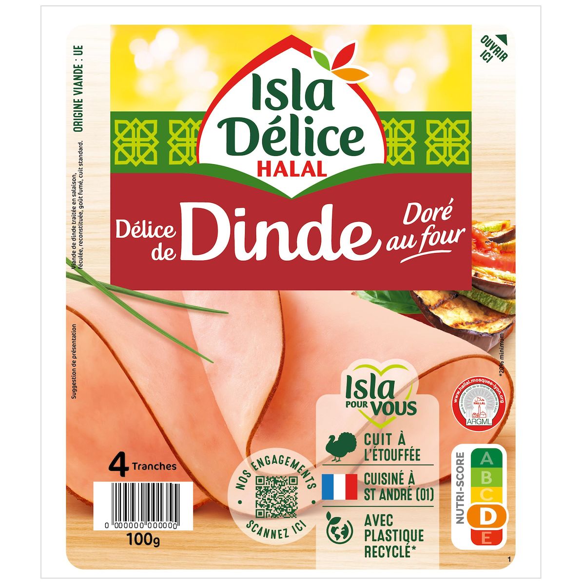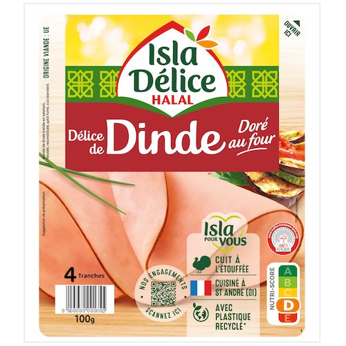 Découvrez le Délice de dinde doré au four Isla Délice ! De belles tranches à base de cuisse de dinde halal, au beau fini doré.