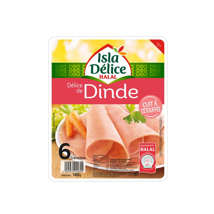 Découvrez le Délice de Dinde Isla Délice, de belles tranches à base de cuisse de dinde halal. Un grand classique, à déguster à n'importe quel repas, avec des légumes, des crudités, en gratin, et même nature.