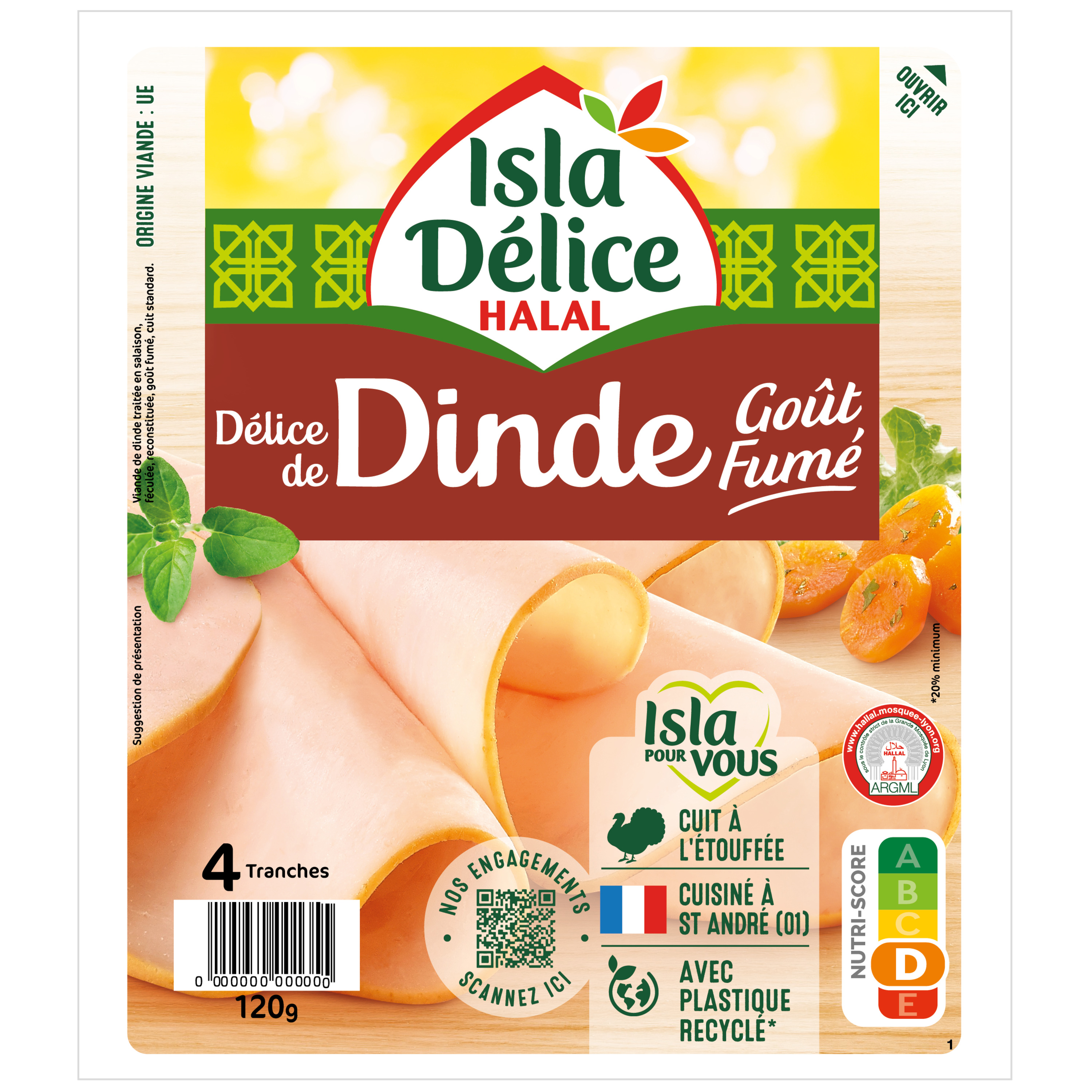 Dégustez le Délice de Dinde goût Fumé Isla Délice, à base de viande de dinde halal au subtil goût de fumé. Accompagné de légumes ou de pommes de terre rôties, il saura être un excellent plat principal et une façon délicieuse de varier les plaisirs.