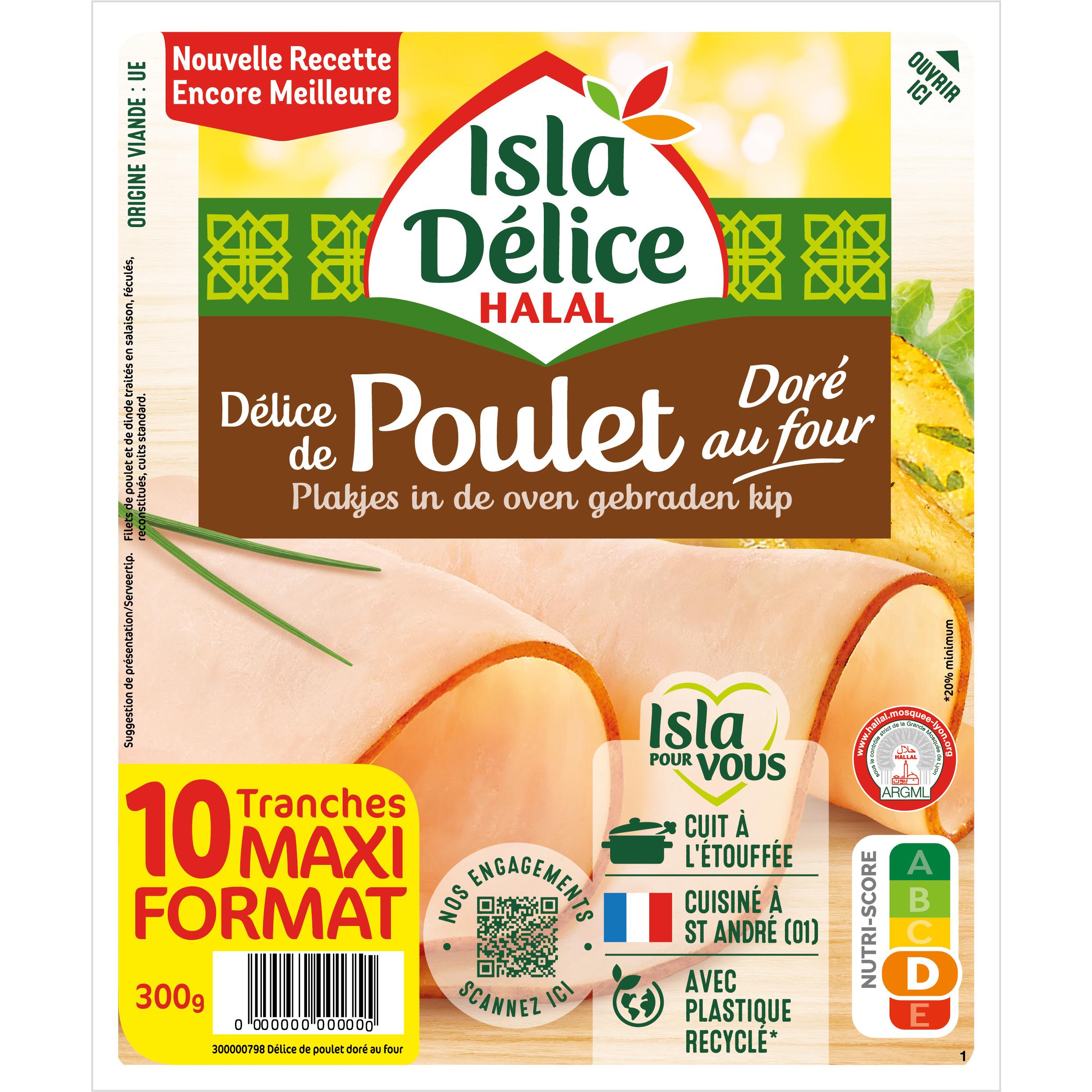 Filet de poulet halal (origine UE) 51%, filet de dinde halal (origine UE) 23%, eau, fécule de pomme de terre, sel, conservateurs (E326 E262 E250), sirop de glucose, stabilisants (E450 E451), protéines de SOJA, antioxydant (E316), arômes naturels. Traces éventuelles de lait.