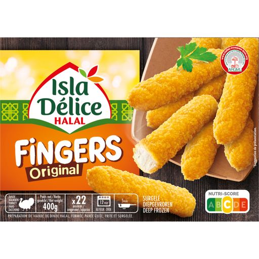 Régalez toute la famille avec les savoureux Fingers Isla Délice.Avec sa préparation à base de viande de Dinde Halal et sa panure dorée et croustillante, les Fingers seront une alternative ludique à vos repas de famille.
