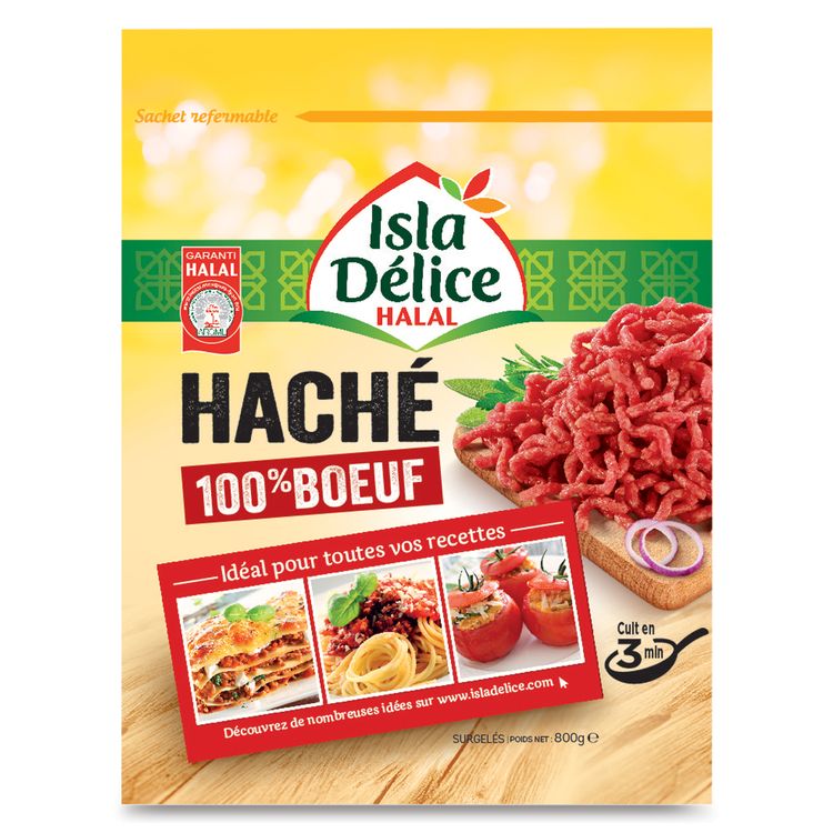 ID VIANDE HACHEE 100% PUR BOEUF 800G PRODUIT CERTIFIE HALAL PAR UN ORGGANISME DE CONTROLE INDEPENDANT. CERTIFICATION APPOSEE SUR LE FACING.