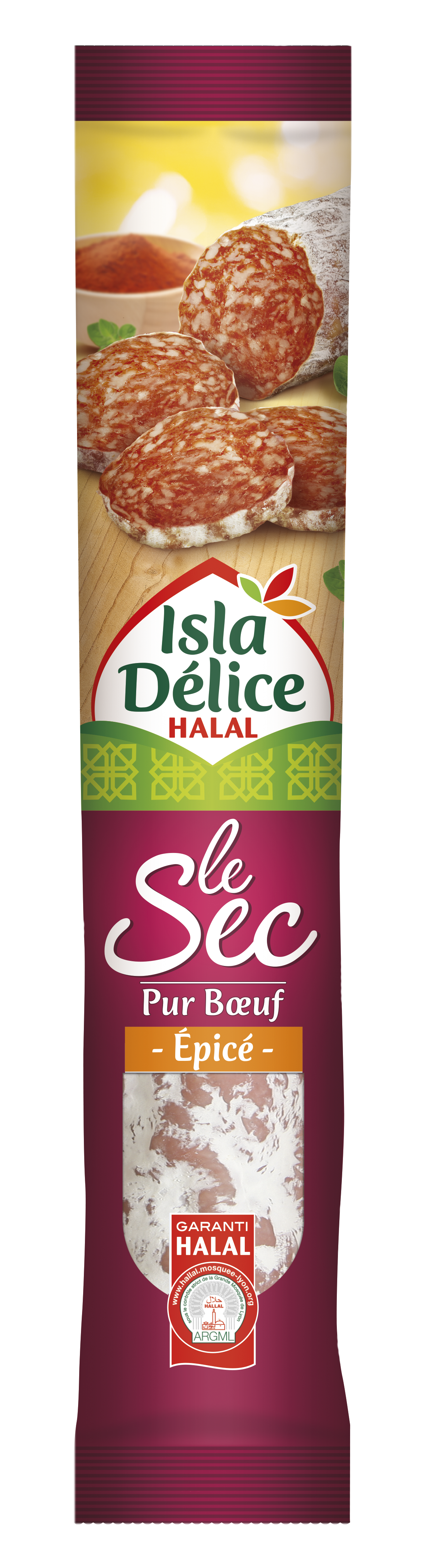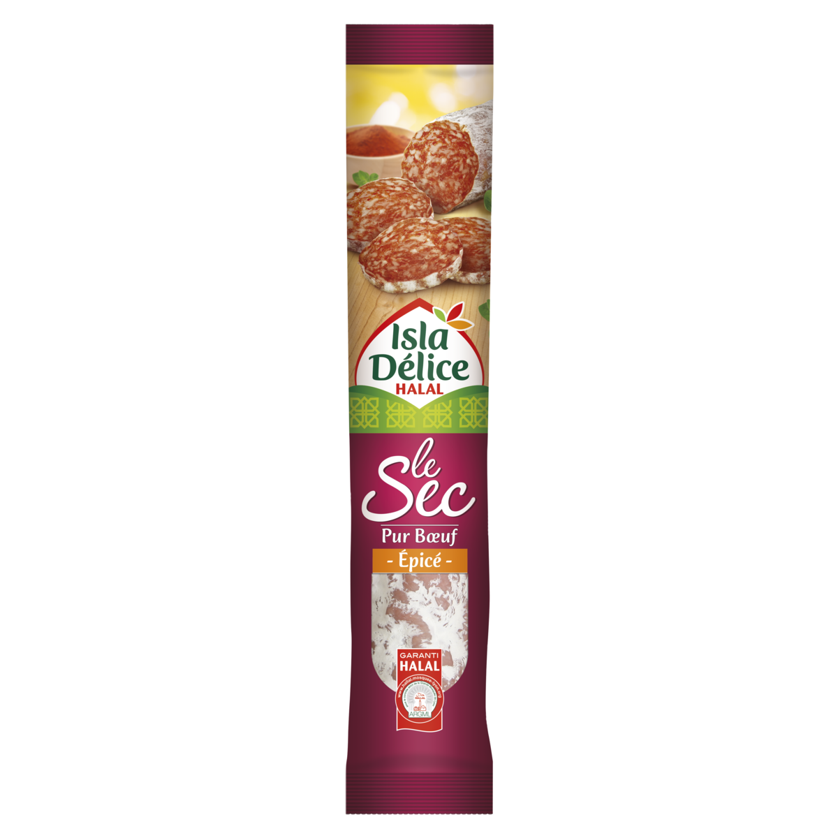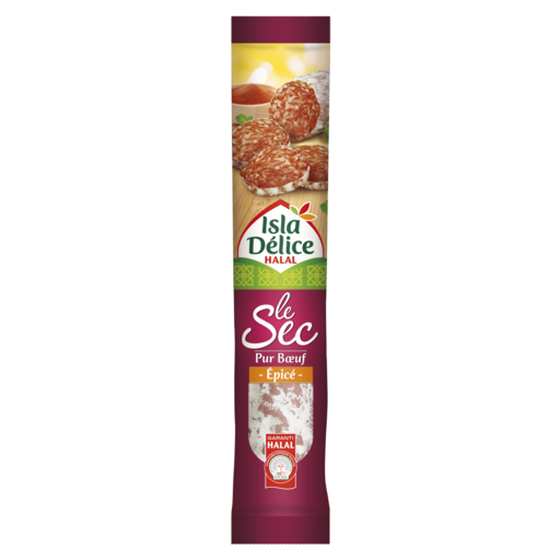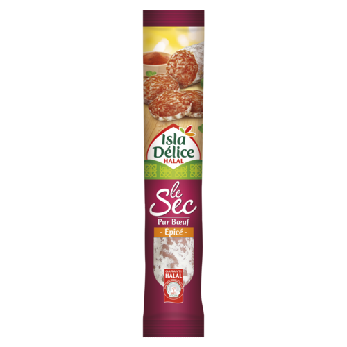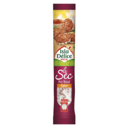Tout le savoir-faire d'Isla Délice pour un saucisson sec halal soigneusement épicé. Séché dans les règles de l'art, il allie texture moelleuse et goût unique. Il saura ravir les palais de tous ceux qui souhaitent rehausser leurs amuses-bouches ou entrées!