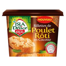 PRODUIT CERTIFIE HALAL PAR UN ORGANISME DE CONTROLE INDEPENDANT . CERTIFICATION APPOSEE SUR LE FACING. RILLETTES DE POULET ROTI 220G