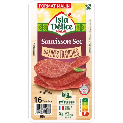 La recette emblématique du Saucisson Sec Isla Délice dans une tranche fine, délicate et fondante, pour tous vos moments de dégustation charcuterie.