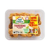 Ingrédients : viande de filet de dinde 60% (origine France), eau, farine de maïs, huile végétale de tournesol, farine de riz, sel, farine de BLE, amidon de BLE, fibres végétales, fécule de manioc, épices, arôme naturel, oignons, poivre.